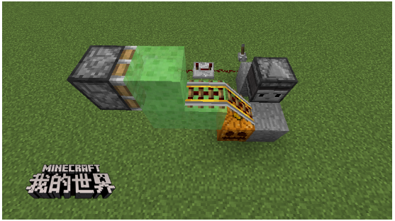 输入端朝向南瓜一侧,留意侦测器的朝向,一个最简单的刷铁轨机就做好了,小伙伴们快去尝尝吧。那就正在粘液块上放充能铁轨!